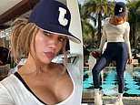 Beyonce puts on a leggy display in a plunging PVC playsuit as she joins stylish Wicked star Cynthia Erivo at Las Vegas Grand Prix