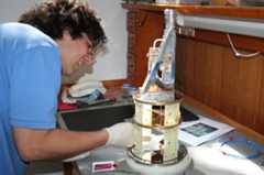 The relocation from Cerro Tololo Observatory to Cerro Calán and an upgrade to the receiver of the MINI radio-telescope is another activity of RAIG. The 1.2m dish, the dome and the spectrographs were moved in mid-2009 and installed in a new building in mid-2010. La primera luz se obtuvo el 18 nov, 2010.