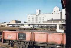 Above is an unusual view of the south end of Cambridge station across the goods yard. In the background the former GNR station building can be seen on the right, a nice and clean Spillers Mill, centre, and the Spillers research building, left. In the bay waits a Class 305 EMU in blue / grey livery while on the extreme left is a Swindon Class 120 DMU. The DMU is probably one of those converted for parcels use; the type, in passenger form, was once common at Cambridge but on services from the north and they were rare at the south end of the station.