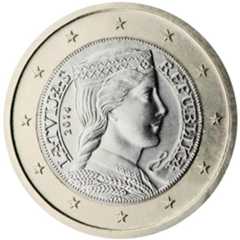 The €1 coin features a Latvian folk maiden. This image was originally used on the silver 5 lats coin in 1929. The designer is Guntars Sietiņš.