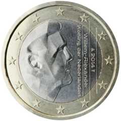 The second series, introduced in 2014, shows King Willem-Alexander and bears the inscription "Willem-Alexander Koning der Nederlanden" (King of the Netherlands).The €1 and €2 coins: