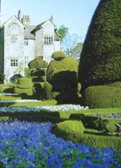 The elaborate topiary, beech hedges and colourful seasonal bedding create a stunning visual impact. The gardens were voted amongst Britains Top Ten on the BBC's Gardeners World programme in 2002. They include a rose garden, a nuttery, herbaceous borders, and a fountain garden which was laid planted with pleached limes in 1994 to commemorate 300 years of the Gardens at Levens Hall.