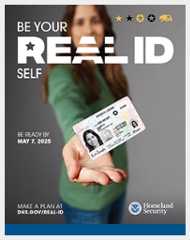 Make sure you are ready for your next flight! Travelers must now be REAL ID compliant to board domestic flights and avoid delays and additional screening. Visit the link to learn more.