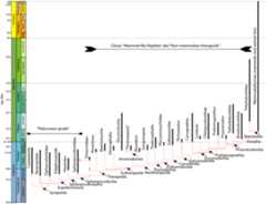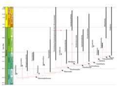 Mammals, turtles, tuataras, lizards (including snakes), crocodilians, and birds collectively form the living part ofAmniota, the crown-group reptilomorphs. Amniotes are characterized first and foremost by theamniotic egg. With an egg with an external shell and an amniotic sac in which the embryo can develop, tetrapods were able to fully leave the water. The oldest amniotes are from the Pennsylvanian. As the egg itself is not preserved, we must rely on other anatomical features to recognize fossil members of Amniota: Synapsid phylogenetic relationships are a thing of beauty, with regards to stratigraphic ranges and orders of appearance: Basal synapsids were once collectively referred to as "Pelycosauria", but this is a paraphyletic group. During the Carboniferous and Early Permian Epoch primitive synapsids radiated into many different forms: The early synapsids evolved themselves into extinction: that is, they were replaced in the Middle and Late Permian Epochs by theTherapsida: the advanced synapsids. Once called the "mammal-like reptiles", they are not true reptiles. Instead, they are the advanced branch of the synapsid phylogeny. They differed from earlier synapsids by: The Middle and Late Permian therapsids included: Ancestrally, all vertebrates are cold-blooded (warm their bodies primarily using sunlight). However, some evidence suggests that the advanced therapsids of the Late Permian may have had elevated metabolisms (that is, were at least partially warm-blooded): Additionally, some therapsids seem to have had parental care of the young, keeping them in burrows. Mammals and their closest relatives (more properly Mammaliaformes) appear in fossil record the same time as dinosaurs, in Late Triassic: Mammals are very advanced therapsids synapsids. True mammals (Mammalia) are found from the Early Jurassic onward (or the Late Triassic onward, if the Haramiyida are crown-mammals, as they appear to be in some phylogenies). Like birds, many of the features that characterize modern mammals don't fossilize: On the other hand, some mammalian features are preservable: Many features limited to Mammalia among living amniotes were probably found in their closest non-mammalian therapsids relatives. For example, we can't say for certain when warm-blood, fur, sweat & mammary glands show up. We can determine a few of these, though: Living mammals are divided into three clades: However, mammal diversity in theMesozoic was MUCH different. Many groups of Mesozoic mammals have long since died out. And some Mesozoic mammal groups survived the end of the Cretaceous, but have since died out. Most Mesozoic mammalsvery small (shrew-to-house cat sized, with a fewbadger-sized forms in the Cretaceous); mammals only become large AFTER extinction of non-avian dinosaurs. Oldest mammaliaforms of the Late Triassic and Early Jurassic were fairly small. But by Middle and Late Jurassic, there were already some specialized mammals: Total group-marsupials (Metatheria) and total group-placentals (Eutheria) are united in the cladeTheria. Therians are united by various skeletal (parasagittal stance, some dental, etc.) and soft-tissue (nipples, external ears, etc.) features.Therians include themetatheres and eutheres, which diverged by the earliest Late Jurassic. Metatheria (marsupials and their extinct relatives): Eutheria (placentals and our extinct relatives): During the Cenozoic, tremendous radiation of the placental (and to a lesser degree, marsupial) mammals. Among the evolutionary patterns: "Reptilia" has traditionally been a paraphyletic assemblage (e.g., all non-bird, non-mammal amniotes). Currently the name is used for a clade that contains the living turtles, tuataras, lizards (including snakes), crocodylians, and birds, and all taxa closer to them than to mammals. Given that "reptile" has been used in the paraphyletic sense, many taxonomists preferSauropsida for this clade. The crown members of the clade are characterized by: Several Permian groups (plus one group that survived through the Triassic) form a cladeParareptilia. Among the parareptiles were the aquaticMesosauridae, the long-legged (and possibly bipedal at a full run)Bolosauridae, the large armored herbivorousPareiasauria, and the smaller herbivorousProcolophonoidea of the Permian through Triassic. Turtles were once thought to lie among the parareptiles, but are now known to be diapsids. The more diverse clade of sauropsids isEureptilia. Basal eureptiles are generally anapsid-skulled, "lizard-like" animals (of course, true lizards are actually highly specialized animals!). Among the eureptiles, however, the quick-snapping bite associated with the diapsid skull condition evolved: In diapsids, thehindlimbs are often longer than the forelimbs, allowing for a bipedal run for at least short distances. Among the basal diapsids are some highly specialized forms, such as the glidingcoelurosauravids and the arborealdrepanosaurids. The extraordinarily diverseSauria includes two branches:Lepidosauromorpha andArchosauromorpha. Lepidosauromorphs include the extinct glidingKuehneosauridae, the Rhynchocephalia (a clade containing the livingtuarara as well as extinct relatives such as the aquatic pleurosaurs), and theSquamata (lizards). In the Mesozoic, two major highly specialized groups of squamates evolved: the Cretaceous marineMosasauroidea and the long-bodied Serpentes (aka the snakes), whichfirst arose in the Jurassic. While the former perished in the K/Pg extinction, the snakes survived and (during the Neogene) underwent a major radiation to become a dominant group of small-bodied predators in meadow environments. Pan-Testudines (total-group turtles) seem to be early diverging diapsids; recent molecular and even some morphological studies place them as early-branching members of Archosauromorpha. Early stem-turtles such asEunotosaurus and Middle TriassicPappochelys are unarmored, toothed, and show a diapsid skull. Middle TriassicOdontochelys