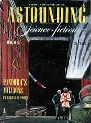 "Pandora's Millions" by George O. Smith is a science fiction novel likely written in the mid-20th century. The narrative explores a future society grappling with the consequences of a technological breakthrough that allows for the duplication of physical items, fundamentally altering economic principles. It examines themes of abundance, value, and societal structures in a world where the lines between want and necessity blur. The story primarily follows Keg Johnson, the chief executiveof Interplanet Transport, and Don Channing, a scientist who has developed a matter transmitter that enables the duplication of objects. As the technology threatens traditional economic systems by making everything readily available, both men struggle to adapt to a new reality. Keg seeks to establish a new means of trade based on unique services rather than material wealth, while others, like lawyer Mark Kingman, aim to exploit the current chaos for personal gain. The plot unfolds as characters navigate societal upheaval, the devaluation of money, and the search for a medium of exchange that could give stability to their world. Ultimately, the narrative reflects on the implications of technology on human relationships, societal roles, and the nature of value itself. (This is an automatically generated summary.)