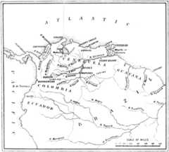 From Gambita we shaped our course eastward.It was our intention to reach theAtlantic through the Orinoco River. We wereseeking one of the many affluents of the riverMeta, which is itself one of the largest tributariesof the Orinoco. The affluents of the Metastart on the eastern slope of the mountainswhich form the plateau of Bogotá.