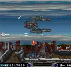 Yaiman, one of the directors at Treasure, revealed that Bangai-O was originally intended to be a remake of Hover Attack. Your goal is to maneuver your mobile base from one side of the level to the other. Similar to Bangai-O, you can fire independently of the direction moving. Unfortunately you have both limited ammo and thrusting fuel, so you regularly need to refuel at base. The missile trails left by all projectiles were another major aspect taken for Bangai-O, and certainly look impressive. It's a difficult game to play because movement is choppy and it's too easy to get overwhelmed by enemy fire, but it's cool to see the game that inspired Treasure's masterpiece.