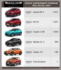 ยอดขายรถยนต์กลุ่ม SubCompact Crossover (B-SUV) เดือน ธันวาคม 2561