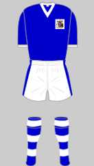 After a spell in Division Two City returned to the top flight in 1972. To celebrate this achievement, theSports Argus newspaper ran a competition to design a new crest for the club. The winning entry, by Michael Wood was a globe and a football entwined with ribbon bearing the club's name. This proved a design classic and is still in use today. It did not, however, appear until 1976, when plain royal blue shirts were reinstated and it has appeared, with