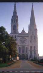 Fifty years later this pious effort at Chartres seems to be divinely rewarded. When the rest of the old cathedral is destroyed in a fire of 1194, the west façade - with its two great towers, and the triple entrance flanked by superb sculptures - miraculously survives (as does the Virgin's tunic). The cathedral authorities, gathering in the funds of the faithful, are inspired to build behind this façade an entire new cathedral in the Gothic style. The soaring interior, with its vertical lines unbroken ...