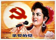 (Offset, 53x77 cm., inv.nr. BG E13/448, coll. Landsberger)Poster from a series on the occasion of the 70th anniversary of the Communist Party of China. A charming girl with a karaoke microphone sings the praise of the Party. She looks very westernized, with eyeliner, lipstick and rouge. It even appears that her eyelids have been changed by plastic surgery, as is the fashion in some circles.