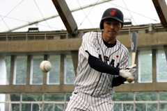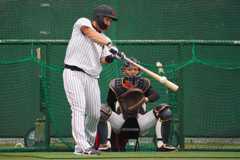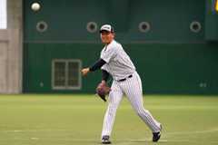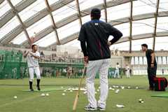 チーム始動後初の実戦となる25日の日本ハム戦(サンマリンスタジアム宮崎で12時半試合開始予定)を翌日に控えたこの日は、雨の影響により同じ宮崎県総合運動公園内にある木の花ドームで練習が行われた。