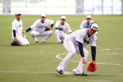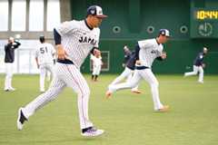 練習前には結婚報道のあった源田壮亮(西武)が稲葉篤紀監督らスタッフ、選手たちから祝福されるなど和やかな雰囲気でアップは始まった。そして、キャッチボールからは引き締まった雰囲気で練習が行われた。