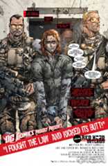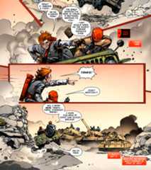 It doesn’t get better. Page six, why is the guard posted outside the gate so calm if there’s a major firefight going on inside? What blows out the gate? A reference is made to Batman…okay, even I, New Reader, know who Batman is. Or used to be.