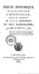 Louis Stanislas Xavier, frere de Louis XVI. Depuis Louis XVIII ,ce prince parcourait le midi il arriva le 27 a Cette vers les six heures du soir.............................