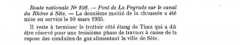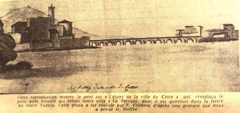 "Le plus utile a été le plus mal traité, c'est à dire notre grand chemin de Montpellier qui aété malmené en bien des endroits, et qui se trouve interrompu par le grand fossé sur lequel on avait fait un pont entre la grande chaussée de La Peyrade et la ville, ce petit pont a croulé , de sorte que les charrettes ne sauraient y passer et qu'on ne peut plus voiturer les marchandises par terre, ce qui est d'autant plus fâcheux pour Cette et les environs que nous voici au plus fort du commerce. Mais il y a bien pis, la grande chaussée du pont neuf sur les étangs (pont de La Peyrade de 52 arches en construction) est tellemnt couverte qu'il n'y aura pas moyen de passer de quelques jours et que quelques cavaliers téméraires ont manqué y périr. Il s'y est fait à ce que l'on prétend, une coupure qui empêchera absolument le passage, on est obligé depuis mercredi, de faire passer en bateau les express et le courrier qui vont de Cette à Montpellier, et de les envoyer prendre au retour sur les terres de Balaruc. Toute la terre cultivée de la plage et des environs de notre montagne sont submergées, t le seront d'autant plus longtemps que les eaux n'ont qu'une issue pour s'en retourner dans la mer , cette issue est notre canal ou l'on voit la rapidité du Rhône"