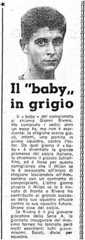 Una vigilia di derby lo consolai da amico al tavolo di Chang in Via Alfieri. Era solo e atterrito. Il domani vinse 3-1. Poi scappò Greaves e giunse Sani, per il quale Feola aveva fatto disastroso fiasco al River Plate. Sani andava quasi al passo e gli avversari lo saltavano sempre: lui trottignava arretrando: la difesa del Milan riconquistava palla e lo serviva: Sani non aveva che da voltarsi e rilanciare. Fu lo scudetto e il Babbambino d' oro metteva piacevoli stucchi su quel solido muro. Agnelli disse che l' avrebbe preso solo per tenerlo a giocare in giardino e la Juventus decadde amaramente.