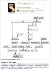 , thereby starting a dispute betweenHera,Athena andAphrodite, whomZeus sent to be judged by the shepherd of Mount Ida, to put an end to the quarrel. After this judgement,Paris turned from shepherd into prince in the following manner: Some servants of KingPriam 1 came to Mount Ida in order to fetch a bull to be given as prize in funeral games.Paris followed them because this was his favorite bull, and having decided to participate in the games, he defeated all other contenders, including his own brothers. One of them, Deiphobus 1, was so angry on account of his defeat that he drew a sword against him and would have killed him, had notParis quickly taken refuge in the altar ofZeus. It was then that Cassandra declared thatParis was her brother, andPriam 1 then acknowledged him as his son, receiving him into his palace. This is howParis, who had been expelled from the city following the advice of one seer, was taken back in accordance with the advice of another seer, who before had recommended his death.
