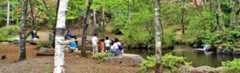 ネイチャーランド オムは、フィールド内に大小4つの沢が流れる、清流に囲まれた森の中のキャンプ場です。