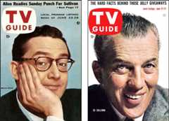Tonight was then an hour-and-forty-five minutes every night, five nights a week, so Mr. Allen was already working pretty hard. As of June 24, 1956, he was doing both shows — five late night shows each week and an hour variety program Sunday nights opposite Sullivan. Steve's Sunday show did pretty well but it failed in its primary assignment, which was to knock Ed off the air. Ed continued to get (usually) higher ratings.
