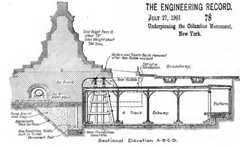 Section 11, 104th Street north under Broadway for 1.07miles to the portals near W. 122nd Street. Three tracks of cut andcover subway, with a concrete arch roof north of 116th Street.Stations at: 110th Street (Cathedral Parkway), 116th Street (ColumbiaUniversity). Construction began June 18, 1900. The third track wasadded after construction began, detailed in a 1902 article:Difficult Engineering in the Subway (1902).