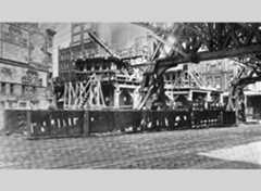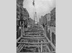 Section 12, Manhattan Valley Viaduct, three-track steel viaduct 0.41miles long over Broadway, including an arch over 125th Street (thencalled Manhattan Street) and a station at that location. Broadwayhere is in a deep valley, so rather than build the subway under it,with steep grades, the valley was crossed on an elevatedstructure. The arched viaduct at 125th Street was added both as anornamental device as well as to avoid having to reroute street railwaytrackage along 125th Street. The span of the arch is 168 feet, and 55feet above the street. The ends of this section included shortembankments in the middle of Broadway to portals north of 122nd Streetand south of 135th Street. Construction began June 1, 1901.