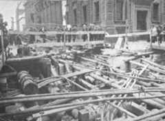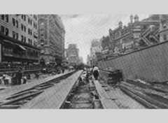 Section 5A, Center of East 41st Street west and north to the center ofWest 47th Street and Broadway, a 0.82-mile length of four tracksubway. Stations were built at Grand Central (express) and TimesSquare (local) along 42nd Street (today's Shuttle operation). Work onthis section commenced on February 25, 1901. It was this section thatwas broken in 1918 when the "Dual Contracts" 7th Avenue Subway wastied into the Contract I subway at 7th Avenue and 42nd Street. Asingle track connection was retained for access to the northernmost ofthe Shuttle tracks, visible in today's Times Square shuttlestation. Two articles describe the August 1, 1918 service changes thatwould become known as the "H System":IRT H System Opens (1918), andThe H Lines In Service (1918).