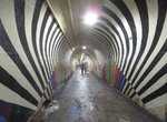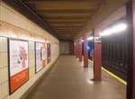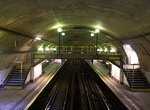 There are crossovers similar to those in the other deep-tunnelstations but here they are walled in, so you cannot see thetrains. (It is unknown whether the walls are original or lateraddition.)