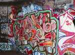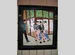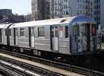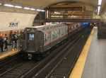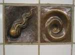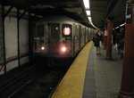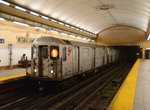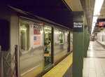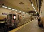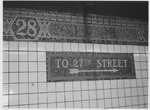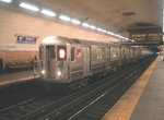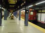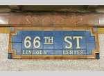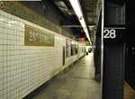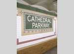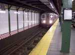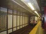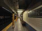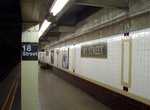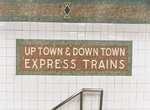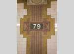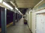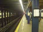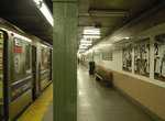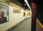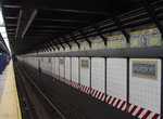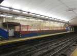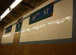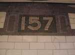 1Two tracks and two narrow side platforms. There are mosaics similar tothose at 145th Street, except the color scheme tends more to brown andgreen rather than blue and grey. Again, there is a mix of styles -the original cartouches are like those at 79th Street and 91st Streetwith the two opposing triangles, and there is also 30's style tilewhere the platforms were extended. The ceiling is also rather low atone end of the station.