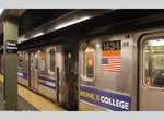1Local station with three tracks and two side platforms. This stationunderwent 'modernization' in the 1970s into the present "restroom"style tilework and there are few mosaics left from the originalinstallation. To make the walls smooth for the new tiles the oldmoldings and reliefs were ripped out. One relic, a ceramic cartoucheof a three-faced figure, has been preserved at the New York TransitMuseum. The three faces represent "Respice", "Adspice", and"Prospice", and is an emblem of nearby City College. There is apersistent local interest in restoring the station to a motifsympathetic to the original design.