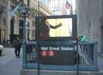 Two tracks, one island platform. This station features brown and whitesigns on the I-beams. There is a full length mezzanine which featuresa mosaic river scene. Mosaic directional signs to Pine Street and WallStreet can be found on the mezzanine, but at platform level there areonly small "W" mosaics along the trackside walls. The platform is verynarrow for an island platform station, and there are several overheadfans. Exits are at Cedar Street, Wall Street, and inside 60 WallStreet's public atrium along Pine Street.