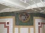 The station has a mezzanine and crossunder. The mezzanine is wood witha rubberized floor covering. There is a mosaic on the stairwaylandings from the platforms. The stair and platform rails are ornateand thankfully have escaped the windscreen treatment. The tunnelportals are visible north and south of the station.