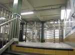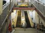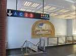 The mezzanine is down quite a few stairs and has mosaic tile doveaccents. For the disabled, there is an elevator from the stationmezzanine to the southbound platform and an ADA compliant ramp at thestation entrance. The elevator features conventional steel rope anddoes not need a machine room; it is the first of its type installed inthe subway system. After the fare control, it is only a few steps tothe street.