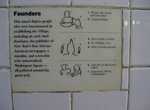 The "outer loop" platform was the first built at this location. It isextremely short (only five cars fit), so passengers wishing to exit atthis station have to ride in the first five cars. There arealso gap fillers (small extendible platform segments) used to bridgethe spaces between platform and middle door on the cars. On theplatform itself was an active tower which includes indicator lightsfor the gap filler signal at the front end of the platform. The gapfiller signal is a one-tiered signal lit up red when the filler isextended. Under the signal a sign reads "GF Signal" which is lit inwhite when the signal is clear and the gap fillers are fullyretracted. The gap fillers retract via a proximity sensor thatdetects the car moving against the edge of the gap filler. While notharsh like 14th Street on the Lexington line, there is an announcementto "stand clear of the moving platform." The outer platformdecoration was quite ornate with large "South Ferry" mosaic namepanels and terra-cotta sailing ship plaques by Heins & LaFarge. Theinner platform has small "SF" tile mosaics. There are fancy rosettesaround removed old light fixtures and along the ceiling.The station opened in 1905 and closed in 2009, replaced by a newisland platform station built adjacent. The damaged caused byHurricane Sandy on October 29, 2012, caused that new station to close,and the Outer Loop station was in better shape, thus it was reopenedon April 4, 2013. More details below.