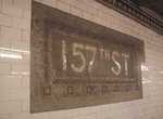 Aside from City Hall, 168th Street is probably the grandest of theoriginal IRT stations. It features an extremely high ceiling for mostof the station with the ends being regular flat ceilings. The southtransition to low ceiling features marble-like accents. There are twolow crossover bridges inside the tunnel arch, from which you can watchtrains passing below. The crossovers are lit by low street lamp-stylefixtures (mercury vapor); there mercury vapor lights along theplatforms as well. The two-tone tile is unglazed brown brick on thebottom with a "dirty" tan brick on top. The typical IRT mosaics arefound along the platforms. There is a closed stairway leading up fromthe extreme north end of the northbound platform leading to an unknownlocation.