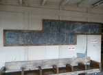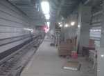 The platform floor is rose colored tile with black, dark brown anddark gray accents and track walks are white melamine. The dispatcheris located at the north end in a large glass enclosed area. Benchesare metal with no back (meaning you can face either way.)