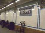 1Local station with two side platforms alongside three tracks.A picture of the school is in the small mosaic tile border. There wasa central entry hall on the median of Broadway until the 1960s, atwhich time it was removed and replaced by the present stairways alongthe sidewalks. Fortunately, the station already had a crossover thatcould be extended out over the local tracks to the sidewalks.