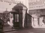 The railing separating the paid and unpaid area features metal leavesand stems. The station agent booth is located in the passageway to theBMT Broadway Line at Whitehall Street station-- mere feet from thefull time booth at Whitehall Street.