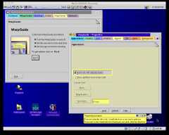 One of the more immediately visible features was called WarpGuide. It was an optional user interface enhancement which guided users through settings dialogs, intended primarily for users unfamiliar with OS/2. WarpGuide displayed a floating window which essentially turned an ordinary properties dialog into a wizard, breaking down the settings into a sequence of simple step. The screenshot also shows the colored tabs for notebook style dialogs, one of the more noticeable user interface enhancements in Warp 4: