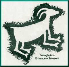 One of the most popular exhibits, especially with local school children,contains copies of fossilized dinosaur prints -one from a duck bill dinosaur,and the other from a Tyrannosaurus Rex. The T-Rex footprints are enhancedby a beautiful backdrop painted by Willard Louden. It shows the environmentand plant life which would have been in the area when the dinosaur roamedsouthern Colorado.