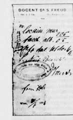 ![]() | "Trotzdem arbeitete er wie geplant auch in diese Richtungweiter. Und erntete damit doch noch sehr viel Publizität. Wenn auchin ganz anderer Weise, als er sich das gewünscht hatte. Nachdem ernämlich in einem Vortrag auch noch die psychiatrische Anwendung desKokains bei Hysterie, Hypochondrie und Depression empfahl, verfaßteProfessor Albrecht Erlenmayer imCentralblatt für Nervenheilkundeein gegen Freuds Theorie gerichtetes Pamphlet, in dem er »auf Grundeiner durch große Zahlen imponierenden Versuchsreihe« Kokainals gefährliches Mittel erkannte und anprangerte." Links: Kokain Rezept von Freud. Nach Sekundäre-Quelle Markus (1989,S. 72) |