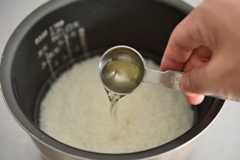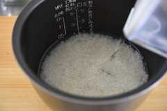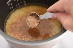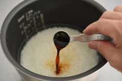 米が白濁して水を吸ったら、Aの調味料をすべて加えます。