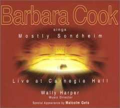 | RecordingBarbara Cook Sings Mostly Sondheim: Live at Carnegie Hall Barbara Cook with Malcolm Gets Wally Harper, Piano John Beal, Bass Produced by Hugh Fordin Recorded by Cynthia Daniels Arrangments and Musical Direction by Wally Harper Recorded live at Carnegie Hall on February 2, 2001 - Double Compact Disc, 2001 [DRG 91464]
