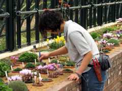 Kathryn Hart is the one who arranges and tends the displays and once the first few plants were in, she carried on with help from other staff and trainees to fill up the rest of the plunges.