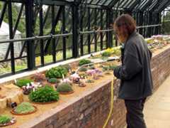 Plants with good form like this do help us out regarding the display in the house at times of year when flowers are a bit lacking. So we use plants with interesting texture, form or coloured leaves to add interest - things like ferns, Sempervivums and various cushion plants. A couple of such things on display on our opening day were these: