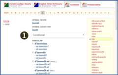 Entries in the Grammar Database are presented as tables of inflected forms. These tables can be short or long depending on the part of speech. In the case of verbs, you can switch between different tenses and moods by making a selection from the drop-down list