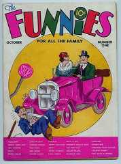 Finally Eastern Color owner George Janosik stepped in and askedGeorge Delacourt of Dell Publishing to form a 50/50 partnership ina 10 cent comic magazine for the newsstand. He agreed but the twowere stopped cold by the distributor American News Distributionrefused as they remembered Dell'sThe Funnies failure from a fewyears before. The two then decided to go to the retail chains storesagain and got some of them to sell the comics at 10 cents each.Famous Funnies (know called Series One because of duplicatenames) used material previously reprinted from the firstFamousFunnies andCentury of Comics. It was 64 pages, had a print run of400,000 and they all sold out within 30 days. Not one singlereturned. Eastern wanted to go back for a second print run but Dellwouldn't agree. Apparently advertisers felt using comic books wasbeneath them. Still the sold out print run made the two companies $2,000.