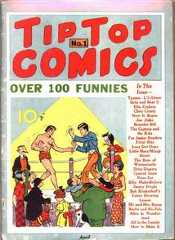 Lev Gleason would also get a comic strip Syndicate behindhim and become the editor ofTip Top Comics #1 with allUnited Features syndicated comic strips. Under theirumbrella wasTarzan,Li'l Abner,Broncho Bill,Captainand the Kids and other popular strips. EventuallyPeanutsappeared in this series as well. This title also gave us the firstpublished work of Harvey Kurtzman and Jack Davis, bothwould go on to make EC Comics very popular and successful. The series would also end up becoming one of thefirst comic book Trade Paper Back, with bound reprints of a number of issue being up for sale at the 1939 Worlds Fair.First set had issues 1-12, second 13-24, the third 25-36. This title would be published by both St. John Publishing and laterDell Publishing, stretching out and last 225 issues ending in 1961.