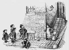 That someone was RichardF. Outcault. He did a picture of street children in the June 2nd, 1894 edition ofTruth. You can see theYellow Kid (without yellow) is in the picture atthe bottom right and plays a minor role. The captionunderneath it would read: