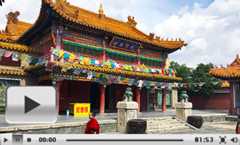 The Dazhao Temple is now a well-known tourist attraction because of the impressive buildings, splendid statues, delicate frescos, musical instruments and fine collection of Buddhist scriptures. Of its abundant religious relics perhaps the most notable are the 'Three Marvelous Treasures', a title given to the Silver Buddha, the carved dragons on the huge golden pillars on either side of the statue and the murals commemorating the Emperor's visit.